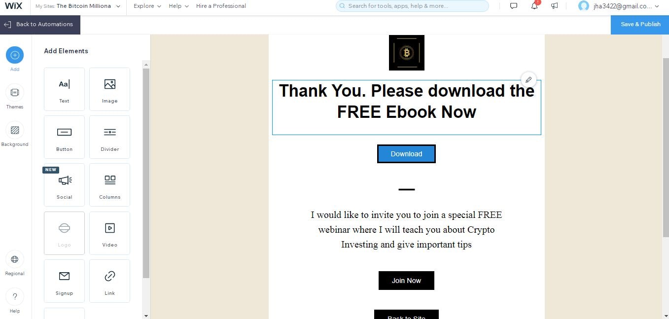 • Create a lead generation landing page to collect email addresses using Wix Artificial Design Intelligence